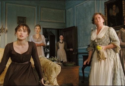 Although Mrs Bennet’s fretful and frivolous nature grates heavily against her daughter Elizabeth, who takes much more strongly after her father, her affection is unquestioned, and Elizabeth’s familial loyalty is a testament to that. Mothers and children have had personality clashes throughout history, and the Bennet household boldly continues in that tradition. We may not aspire to be like Mrs Bennet, but she’s certainly a more common and achievable pattern: someone who is trying her hardest to manifest the best outcomes for those she loves, living in a constant swirl of commotion. It’s a good thing she lives for the drama, I must say.